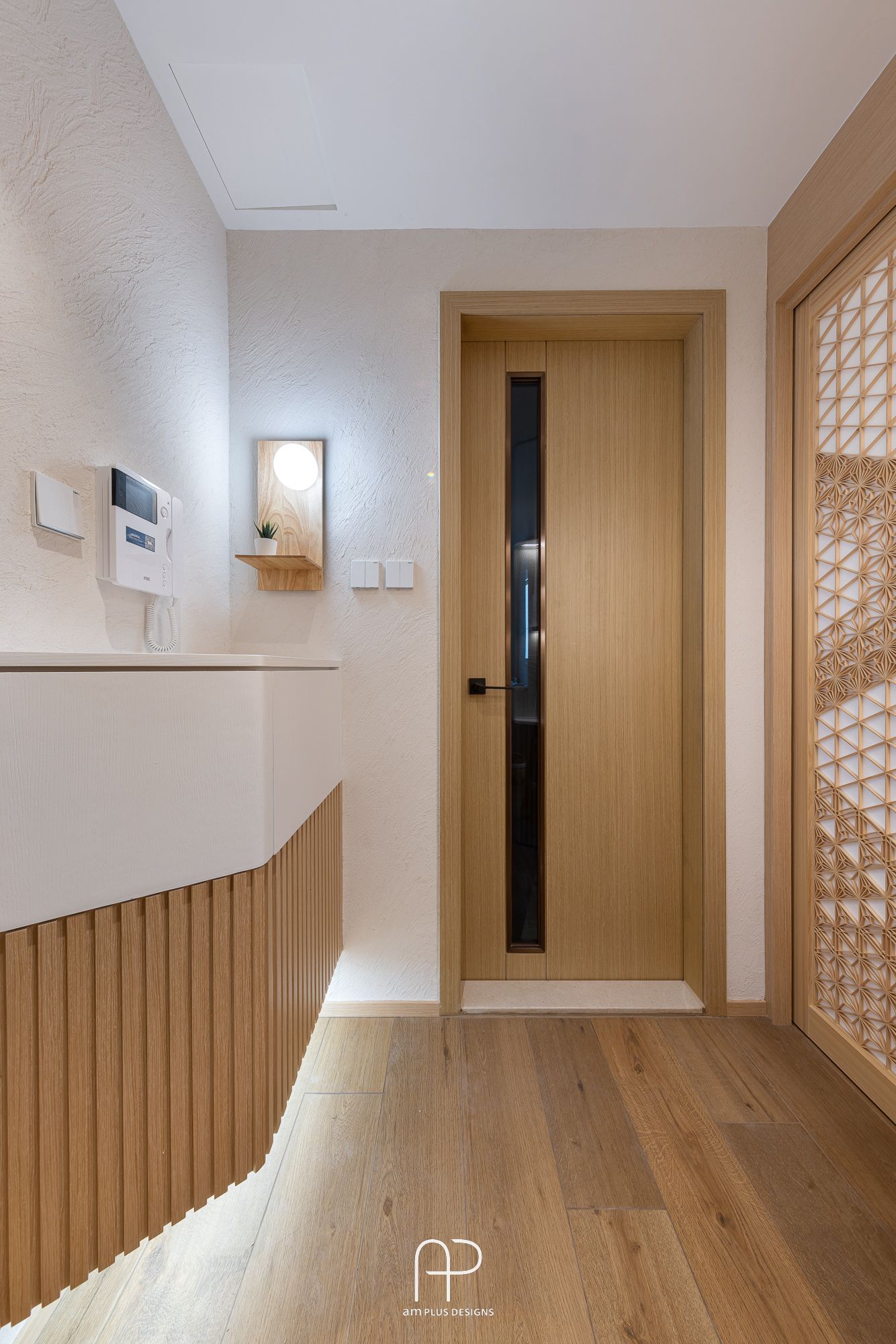 這次 am Plus 全屋空間掌握了日式設計核心,單位使用眾多傳統日式、自然、木質元素,並在造型、燈光、物料搭配上加入不同巧思,以有別以往的新式簡約日系風格,打造舒適居家空間。